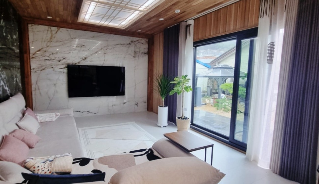 - 기타내부 거실:스기나무 방:편백나무 외부 세라믹사이딩/ 지붕 징크/ 창호 LG시스템창호 /바닥 강마루